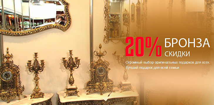 Бронза входит в список металлов, из которых выполняются предметы для элитных интерьеров. Ювелирные украшения традиционно делают из золота, столовые приборы из серебра, а аксессуары для интерьеров – это царство бронзы. Подарки из бронзы - столы бронзовые, стулья бронзовые, консоли бронзовые, часы с канделябрами, дверные ручки, подсвечники купить. Элитная бронза.