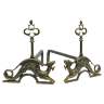 Быки для камина "Дракон" h29x24x34см подставки (пара) для поленьев в очаг (латунь, антик) Италия, выполнены на лучших фабриках мастерами литейного дела из латуни в превосходном цвете античной латуни. Подставка для поленьев- необходимый каминный аксессуар, который помогает огню камину не погаснуть и гореть ровно, так как поленья остаются всегда сухими. Подставки для поленьев создадут уютную и комфортную обстановку в каминной комнате холодными вечерами в кругу друзей и родных возле камина.