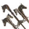 Набор каминных принадлежностей станет роскошным дополнением интерьера каминной комнаты, благодаря изысканному дизайну набора в виде благородных лошадей. Набор для камина (латунь) сохранит каминную комнату в чистоте и порядке и поможет очистить камин от пыли и сажи. Набор аксессуаров для камина состоит из 4-х предметов: совок, щетка, кочерга и щипцы. Все принадлежности выполнены из высокопрочного материала, что станет гарантией качества каминного набора на долгие годы.