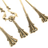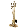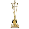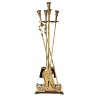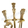 Аксессуары для каминного набора (щипцы, кочерга и совок) крепятся на удобную и красивую подставку, которая как бы обнимает весь каминный набор; метелка вешается на каминный набор сзади на специальный держатель. Принадлежности для камина (латунь) изготовлены из материалов высшего качества, что несомненно порадует своего владельца и позволит использовать набор долгие годы.