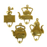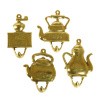 Очаровательный набор настенных кухонных крючков "Чай-Кофе", Италия, изготовлен искусными мастерами литейного дела из латуни в восхитительном золотом цвете. Крючки настенные кухонные изготовлены из материалов высокого качества, что даст вам гарантию надежности и прочности аксессуара при его использовании. Крючки настенные для кухни выполнены в оригинальном дизайне в виде чайника, что станет необычным украшением кухни. В набор входит 4 прекрасных крючков настенных.