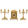 Часы каминные "Ларец" 23х18,5х14,5см с канделябрами на 3 свечи "Лориньян" 24см (латунь, золото) Италия